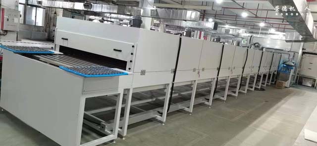 上件→預(yù)熱→自動(dòng)噴A面→烘干→冷卻→半自動(dòng)翻面→預(yù)熱→自動(dòng)噴B面→烘干→冷卻→下件