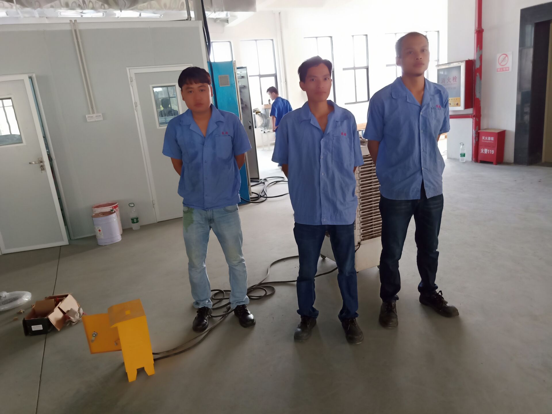 高溫下的不銹鋼表面就像是燒熱的烤板,碰在上面,就是強(qiáng)烈的燒灼感,在通風(fēng)條件差的室內(nèi)又悶又熱,汗水浸濕了衣衫,手上的工作卻仍在繼續(xù),因?yàn)椋磿r(shí)交貨、如期完工,是我們的承諾。在噴涂生產(chǎn)線安裝項(xiàng)目的同事們個(gè)個(gè)都揮灑著汗水,將勤勞與熱情都投入到工作中!臉上流淌的汗珠,衣服上泛著的鹽花,是他們經(jīng)受“烤”驗(yàn)的特有印記。