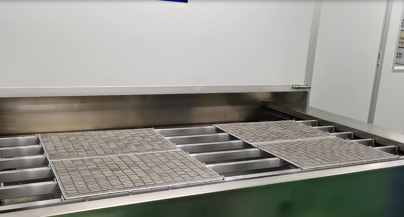 釹鐵硼磁鋼噴漆線、烘干線為可調(diào)速分段鏈條,可實(shí)現(xiàn)不同產(chǎn)品的噴涂、烘干時(shí)間相互匹配,各段鏈條之間網(wǎng)盤可平穩(wěn)過(guò)渡。噴漆線鏈條串桿可拆卸,方便清理及保養(yǎng)。烘干爐的溫度控制可在觸摸屏進(jìn)行設(shè)定,方便用戶操作及管理。