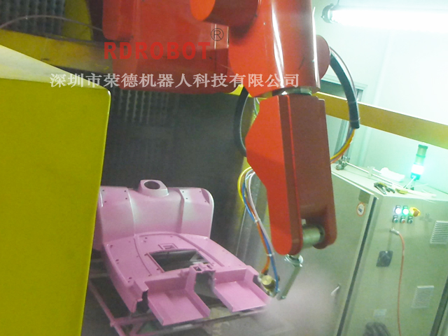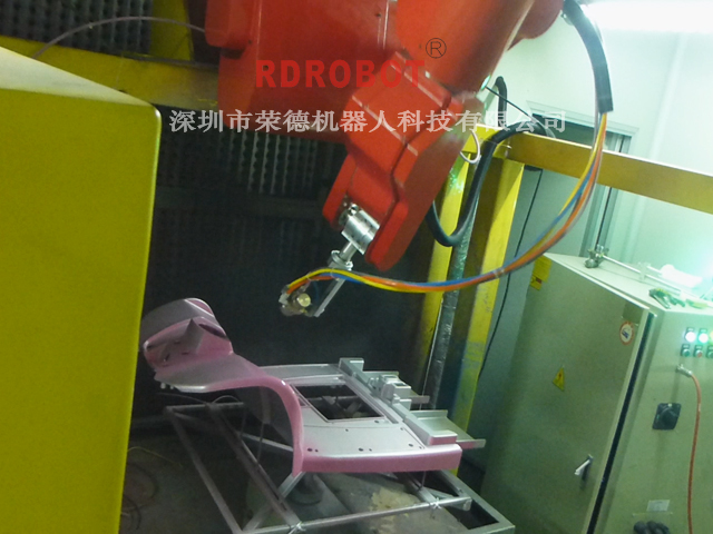 1. 采用目前世界上最前沿的技術-中空手腕,機器人的手腕上安裝末端工具的法蘭,采用中空結構的形式,使得各種管纜費穿整個手腕;2.自主研發(fā)且通過深圳自主創(chuàng)新產品認定并獲得國家科技部創(chuàng)新立項的高性能噴涂機器人;3.各部位轉動關節(jié)主要通過伺服馬達帶動精密減速器驅動,任意空間直線和圖標;4.數(shù)字涂裝:通過數(shù)字化參數(shù)轉化成模擬量電信號輸出,氣動比例閥接收該信號,轉變成氣壓變化,通過氣壓控制噴涂的形狀、氣流速度、油漆流量;5.體積小、工作范圍大、速度快、精度高,可與轉臺、滑臺輸送鏈系統(tǒng)等輔助設備集成作業(yè)。6.柔性大,可實現(xiàn)外表面和內表面的噴涂。7.可按工件軌跡噴涂,可省涂料;8.設備利用高,基本上所有產品都適用;9.可以與輸送帶配合作動態(tài)同步跟蹤噴涂,提高生產效率;10.各個軸傳動沒有直線運動部件,不會產生粉塵掉落,適合無塵噴涂;機器人技術參數(shù) 機器人控制柜規(guī)格 機器人工作范圍榮德噴涂機器人技術特點1.噴涂精確,正常運行時間長、漆料耗用省、工作節(jié)拍短,可24小時不間斷工作,可靠性高2.噴涂速度快,噴涂均勻,依工件變化自動調整噴槍高低、前后、角度位置,噴涂大小控制靈活,360度全方位無死角噴涂。3.機器人防爆,環(huán)保,安全性能高,操作控制簡單易學。4.噴涂機器人可以同時噴涂2--5種不同的產品,一臺抵多臺。5.噴涂機器人壽命長,無易損件,保養(yǎng)簡單,比五軸噴漆臺少了導軌、皮帶等易損件;6.程序可存儲300組,可用U盤拷貝程序,管理方便簡單;7.對運動軌跡轉角處,可用圓弧過濾功能,在直線末端不用停止,直接圓弧過濾到下一條線,速度沒停,提高了效率,也減少了起停沖擊。8.對運動軌跡可任意加噴槍觸發(fā)器,按產品需要加噴涂位置開關槍,減少涂料浪費。